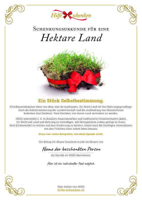 HEKS unterstützt bedrohte Familien dabei, ihr Recht auf Land und Nahrung einzufordern und durchzusetzen. Damit die künftigen Generationen von den Früchten ihrer Arbeit leben können.