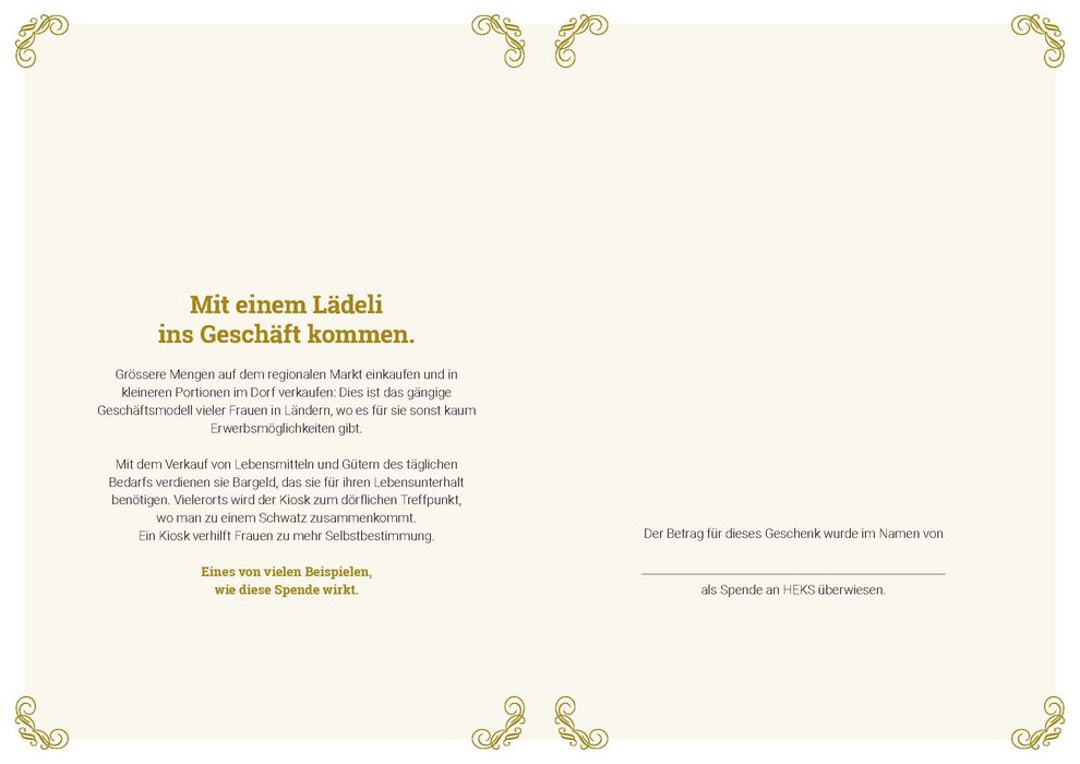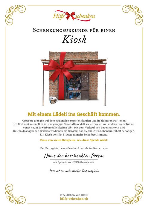 Grössere Mengen auf dem regionalen Markt einkaufen und in kleineren Portionen im Dorf verkaufen: Dies ist das gängige Geschäftsmodell vieler Frauen in Ländern, wo es für sie sonst kaum Erwerbsmöglichkeiten gibt. Mit dem Verkauf von Lebensmitteln und Gütern des täglichen Bedarfs verdienen sie Bargeld, das sie für ihren Lebensunterhalt benötigen. Vielerorts wird der Kiosk zum dörflichen Treffpunkt, wo man zu einem Schwatz zusammenkommt. Ein Kiosk verhilft Frauen zu mehr Selbstbestimmung.