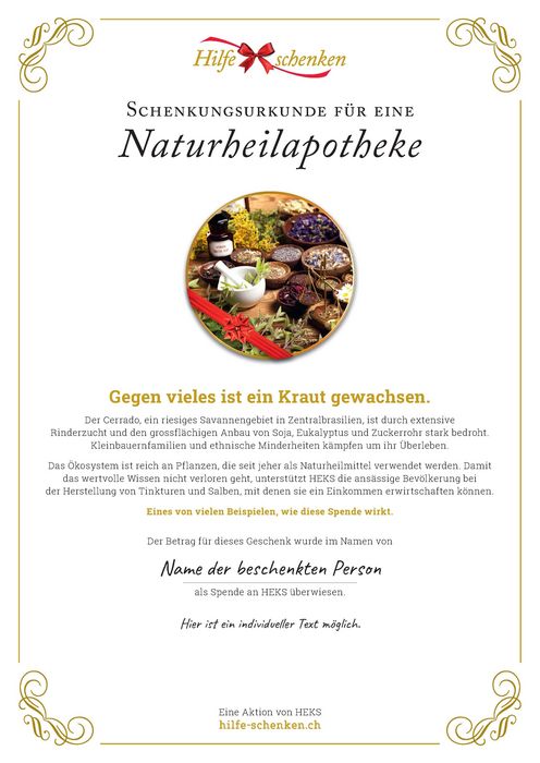 Das Ökosystem ist reich an Pflanzen, Kräutern und Früchten, die seit jeher als Naturheilmittel verwendet werden. Damit das wertvolle Wissen um ihre Heilkraft nicht verloren geht, unterstützt HEKS die ansässige Bevölkerung mit Ausbildungen und technischen Hilfsmitteln zur Herstellung von Tinkturen, Salben und Pulvern. Diese werden über eine Kooperative verkauft und bringen Gewinn ein, der den Gemeinschaften neue Perspektiven eröffnet.