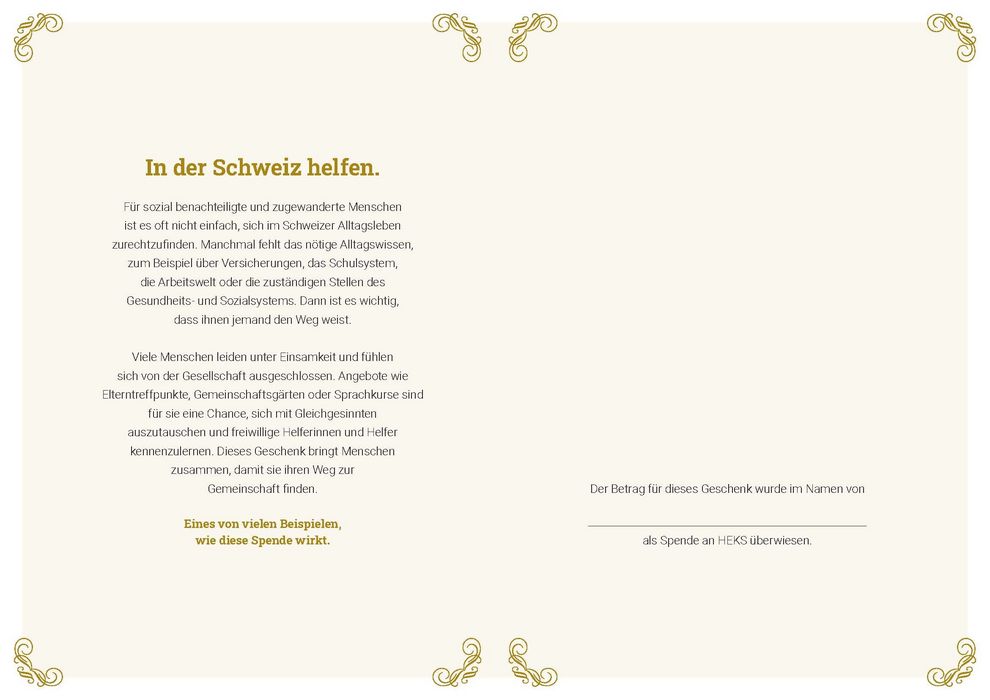 In der Schweiz helfen.
