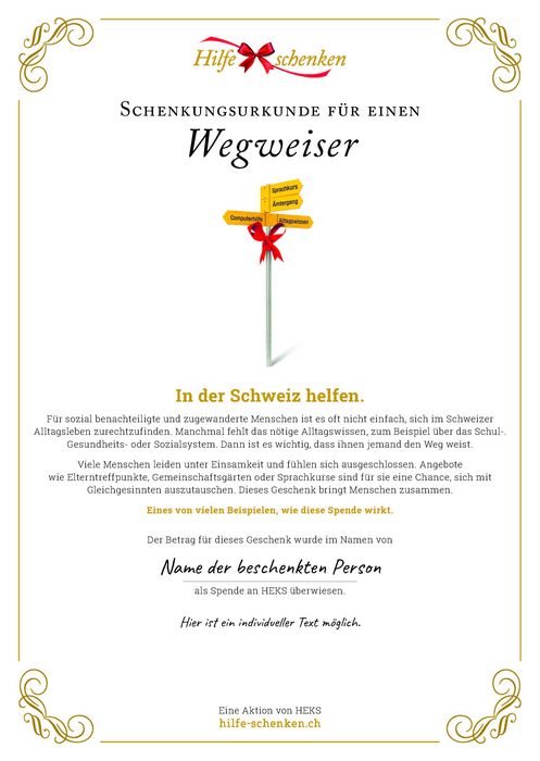 Für sozial benachteiligte und zugewanderte Menschen ist es oft nicht einfach, sich im Schweizer Alltagsleben zurechtzufinden. Manchmal fehlt das nötige Alltagswissen, zum Beispiel über Versicherungen, über das Schulsystem, die Arbeitswelt oder die zuständigen Stellen des Gesundheits- und Sozialsystems. Dann ist es wichtig, dass ihnen jemand den Weg weist.